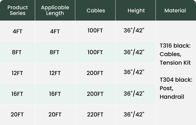 Built to Last – Crafted from premium T316 stainless steel with a corrosion-resistant black powder coating, this kit is designed to withstand the toughest outdoor conditions. The included cables are made from marine-grade stainless steel, ensuring long-lasting strength and durability.