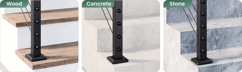 BLIKA 36'' & 42'' Black Surface Mount Cable Railing System DIY Kit (4FT - 28FT, Level Drilled, )
