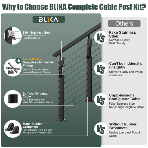 Everything You Need – This comprehensive BLIKA all-in-one cable railing kit includes high-quality black powder-coated posts, black stainless steel...