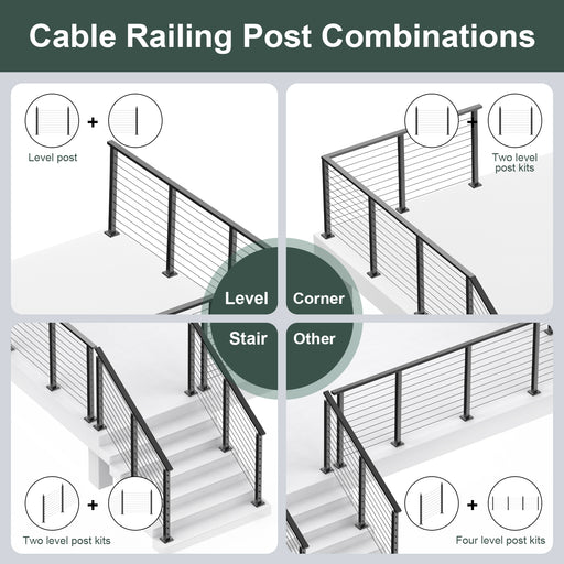 BLIKA 36'' & 42'' Black Surface Mount Cable Railing System DIY Kit (4FT - 20FT, Level Drilled, No Handrail)