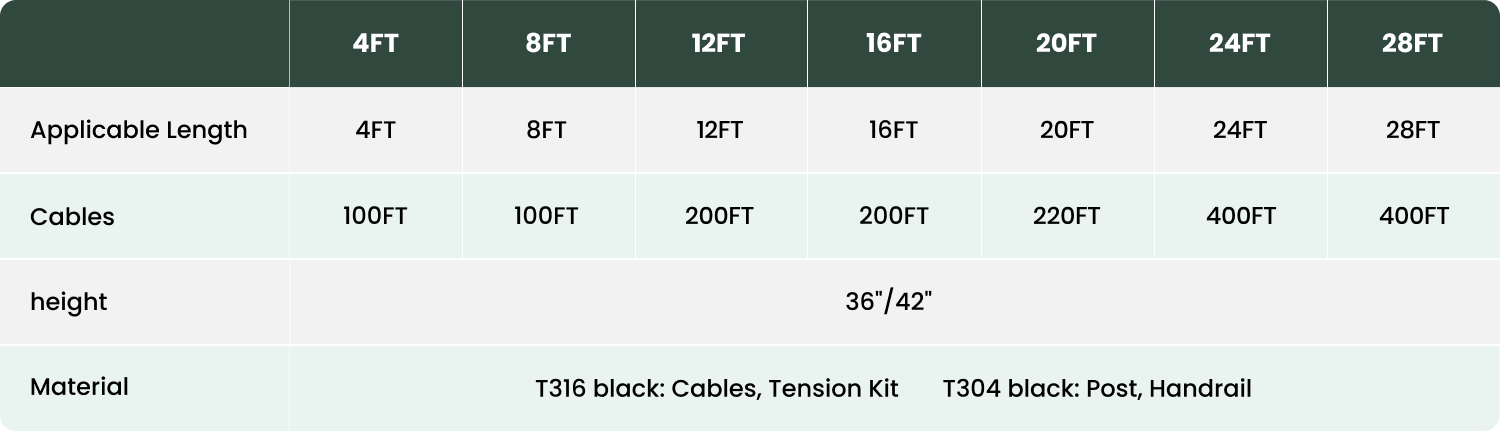 Everything You Need – This comprehensive BLIKA all-in-one cable railing kit includes high-quality black powder-coated posts,  black stainless steel cables, swageless tensioners, protective rubber sleeves, a durable cable cutter, and all the essential installation tools. It also comes with a step-by-step instruction guide, making it a complete, hassle-free solution for your DIY railing project.