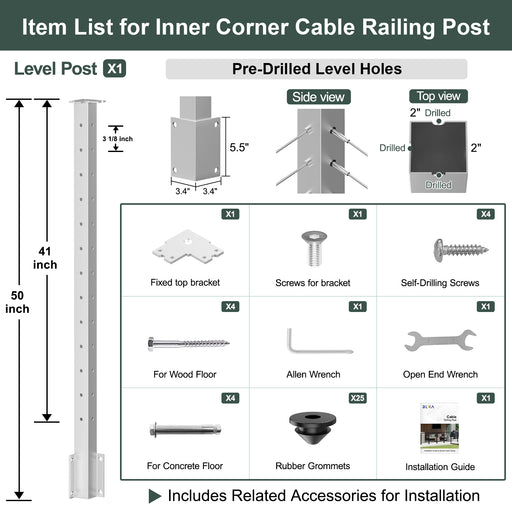 View full detailsBLIKA 36" Level Drilled Side Mount Post for Cable Railing