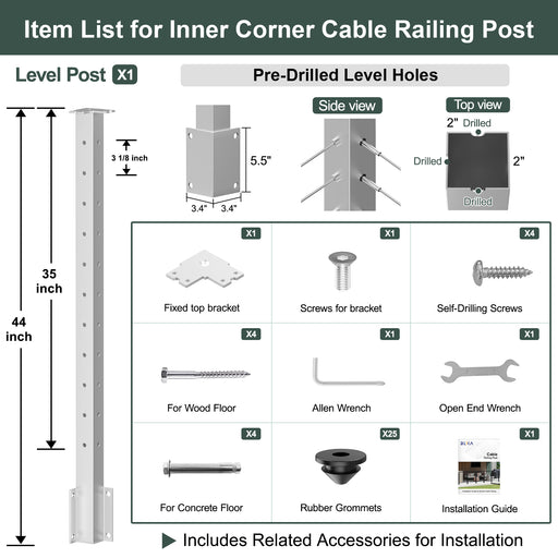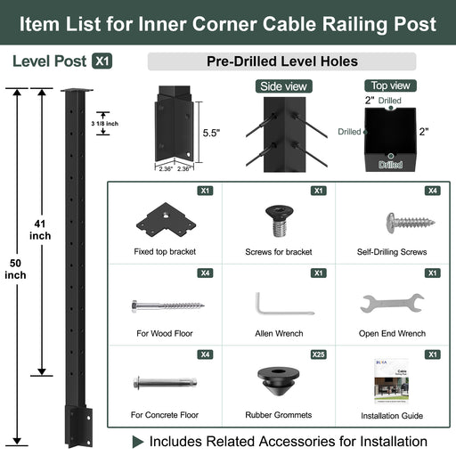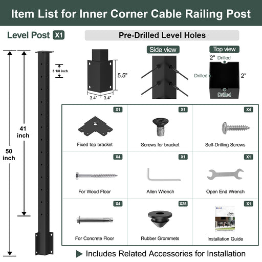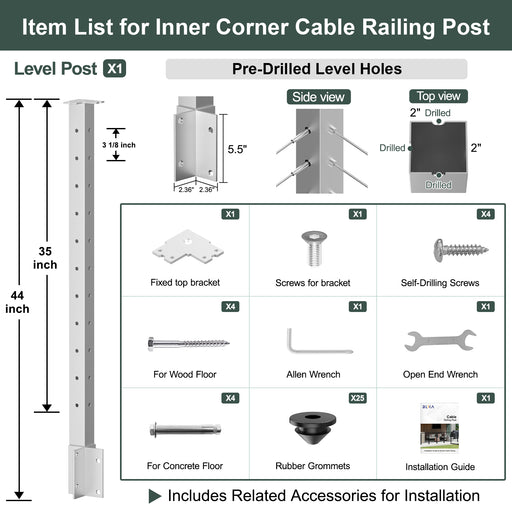 View full detailsBLIKA 36" Level Drilled Side Mount Post with Bracket for Cable Railing