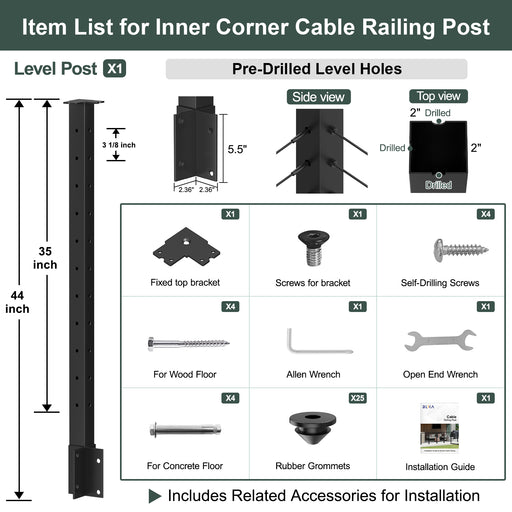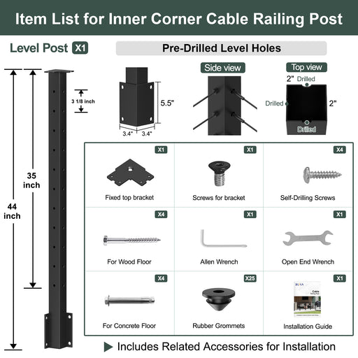 Product OverviewThe BLIKA BL156-IC-35 is a 2×2×36 inch (44-inch post height) black side-mounted pre-drilled horizontal Inner Corner Post, designed ...