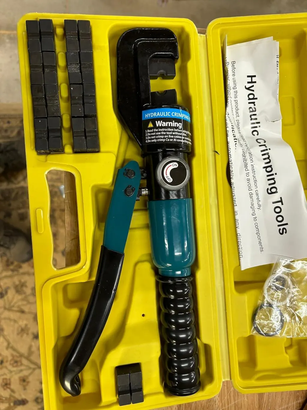 Didn't know these existed and with hydraulics is so cool. I love the set in a box so pieces cannot go misplaced and everything is together in one place so I don't have to look around. I did my first crimping and it was so easy and the finished product is so professional. This is a high-quality tool which makes crimping and cable cutting easy and enjoyable, for a task. So much better than what I have used in the past combining with hammering.